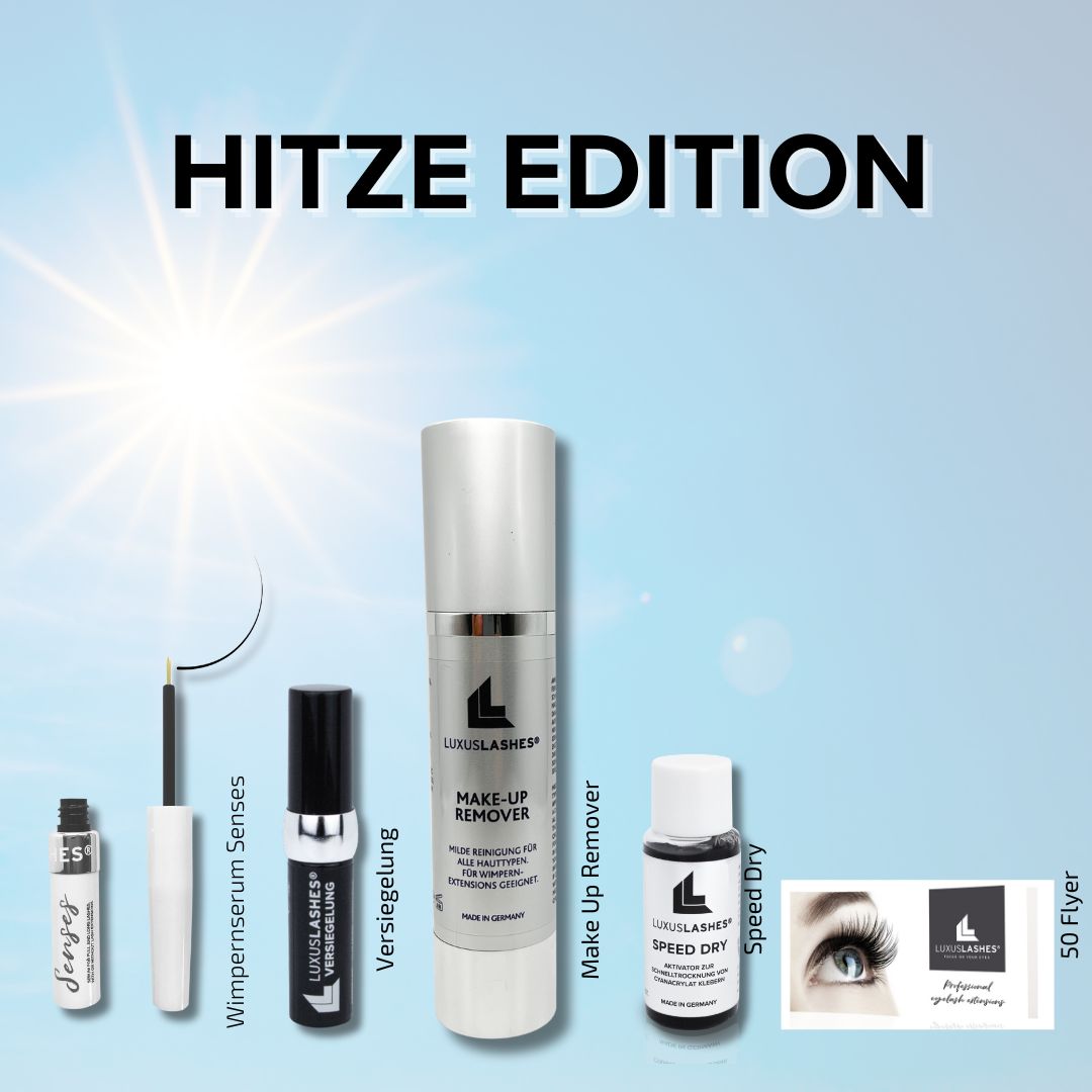 Der Sommer kann kommen â mit der LUXUSLASHESÂź Hitze-Edition bist du bestens vorbereitet auf hohe Temperaturen, erhöhte Luftfeuchtigkeit und den Urlaubsmodus deiner Kundinnen. In diesem Profi-Set findest du alles, was du fĂŒr zuverlĂ€ssige Ergebnisse im Sommer brauchst: âïž Wimpernbooster â fĂŒr stĂ€rkere Naturwimpern âïž Wimpernversiegelung â schĂŒtzt und verlĂ€ngert die Haltbarkeit âïž Make-up Remover â sanfte Reinigung fĂŒr sensible Augen âïž Speed Dry â kĂŒrzere Trockenzeit fĂŒr heiĂere Tage đ + 50 Gratis-Flyer zum Mitgeben an deine Kundinnen đ„ Statt 95âŻâŹ jetzt nur 75âŻâŹ â nur solange der Vorrat reicht! đŽ FĂŒr Profis entwickelt â ideal fĂŒr heiĂe Sommertage & anspruchsvolle Studioarbeit.