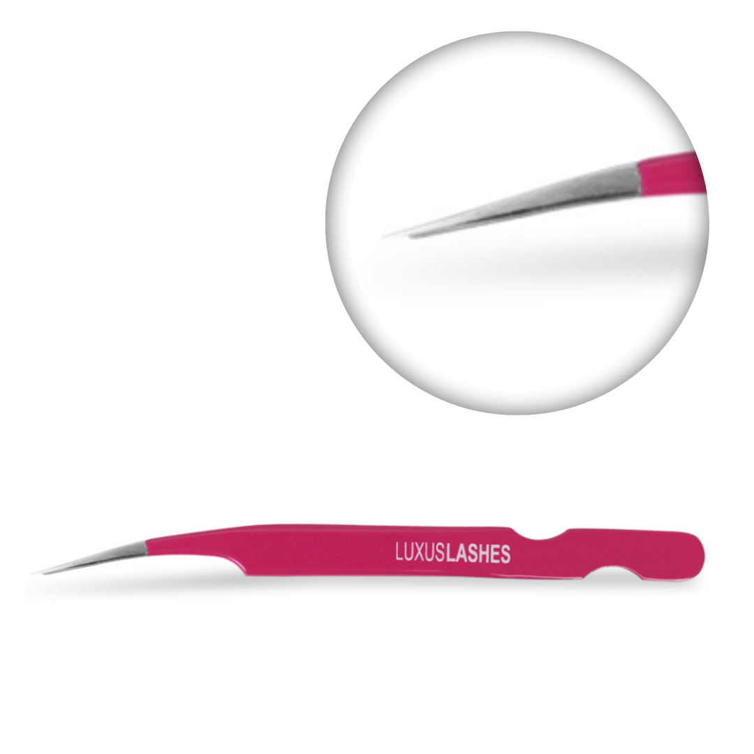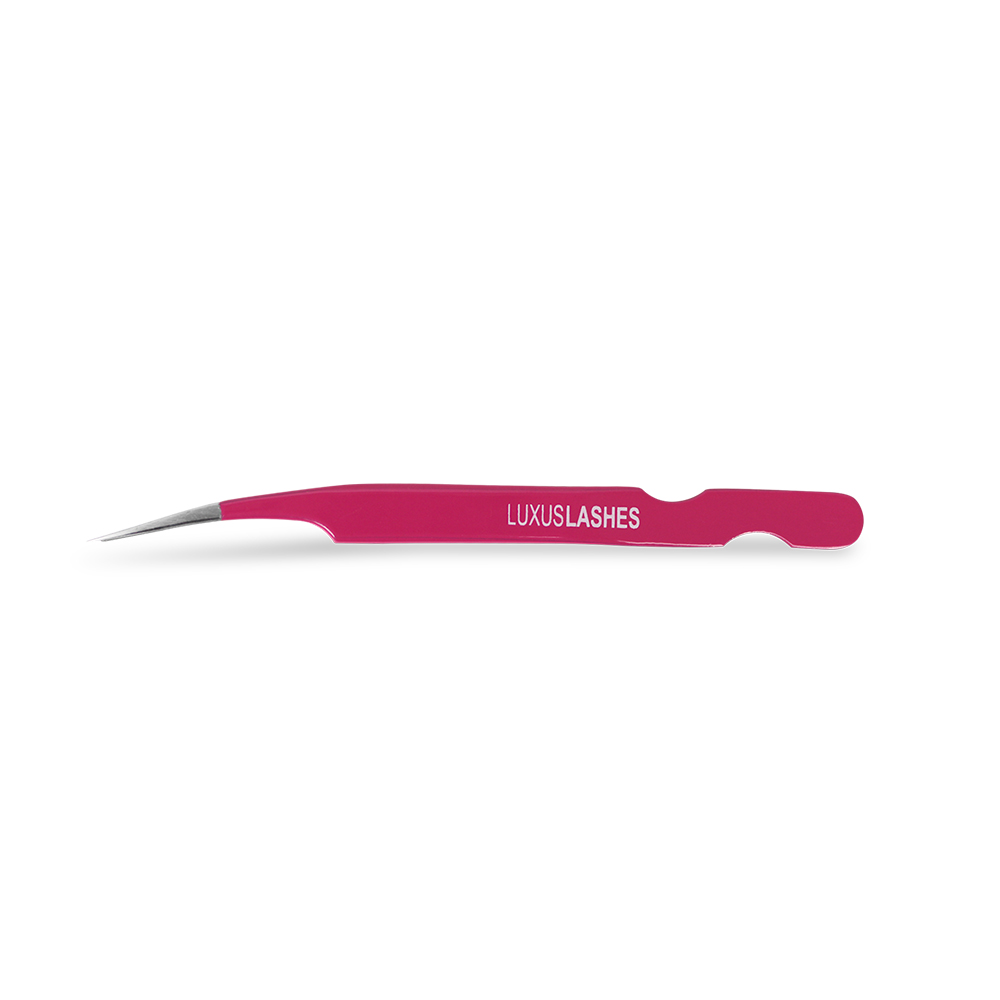 Die gerade Pinzette in Pink hat die ideale Biegung. Die Wimpern können optimal separiert werden und sie bleibt dabei flach an der Stirn liegen.