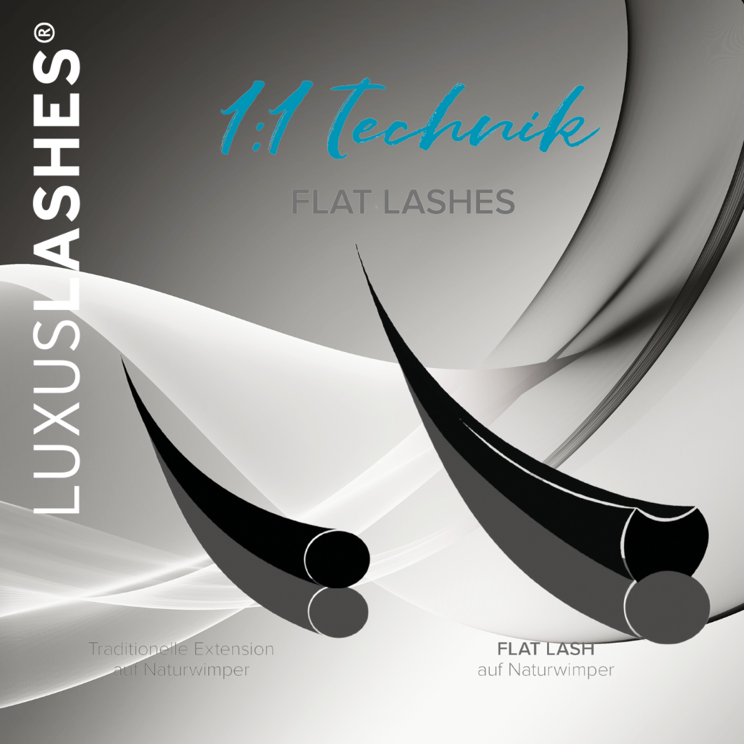 Die neue Generation bei LUXUSLASHES Einzelwimpernverlängerung.BESCHREIBUNG:Die flache Form bietet einen echten Arbeitskomfort bei der Wimpernapplikation. Die FLAT LASHES verbinden sich perfekt, durch die besondere Form und Aussparung für die Eigenwimper, mit der Naturwimper. Mit der innovativen Klebefläche der FLAT LASHES erzielen Sie eine deutlich längere Haltbarkeit der LUXUSLASHES und haben eine viel geringere Belastung der Naturwimpern. Durch die Breite der FLAT LASHES wirken diese dicker, erzeugen somit mehr Dichte an den Wimpern und verleihen dem Auge eine schönere Ausstrahlung. Durch das neuartige Produktionsverfahren dieser speziellen Form der Extension reduziert sich das Gewicht. Eine dieser Wimpern ist um 40% leichter als herkömmliche 1:1 Wimpern. Eine D-Biegung bei einer Wimpernverlängerung beschreibt eine stärkere Krümmung der künstlichen Wimpern im Vergleich zu einer C-Biegung. Hier sind die Hauptmerkmale und Vorteile der D-Biegung:Dramatischer Look: Die D-Biegung hat eine deutlich stärkere Krümmung, die einen dramatischen und auffälligen Effekt erzeugt. Sie hebt die Augen stärker an und sorgt für einen ausdrucksstarken, glamourösen Look.Ideal für bestimmte Augenformen: Diese Biegung ist besonders vorteilhaft für Kunden mit tief liegenden Augen oder geraden natürlichen Wimpern, da sie die Augen öffnet und ihnen mehr Ausdruck verleiht.Volumen und Dichte: Die D-Biegung eignet sich hervorragend für Volumen- und Megavolumen-Techniken, da sie den Eindruck dichterer und vollerer Wimpern verstärkt.Kombinationseffekte: Ähnlich wie bei der C-Biegung kann die D-Biegung mit anderen Biegungen kombiniert werden, um verschiedene ästhetische Effekte zu erzielen und individuelle Kundenwünsche zu erfüllen.Haltbarkeit: Aufgrund der starken Krümmung kann die D-Biegung anfälliger für frühzeitiges Lösen sein, wenn sie nicht richtig appliziert wird. Daher ist eine sorgfältige und präzise Anwendung durch einen erfahrenen Wimpernstylisten wichtig.Zusammengefasst:Die D-Biegung ist eine ausgezeichnete Wahl für Kunden, die einen intensiven, dramatischen Look bevorzugen und deren Augenform von der zusätzlichen Krümmung profitiert.