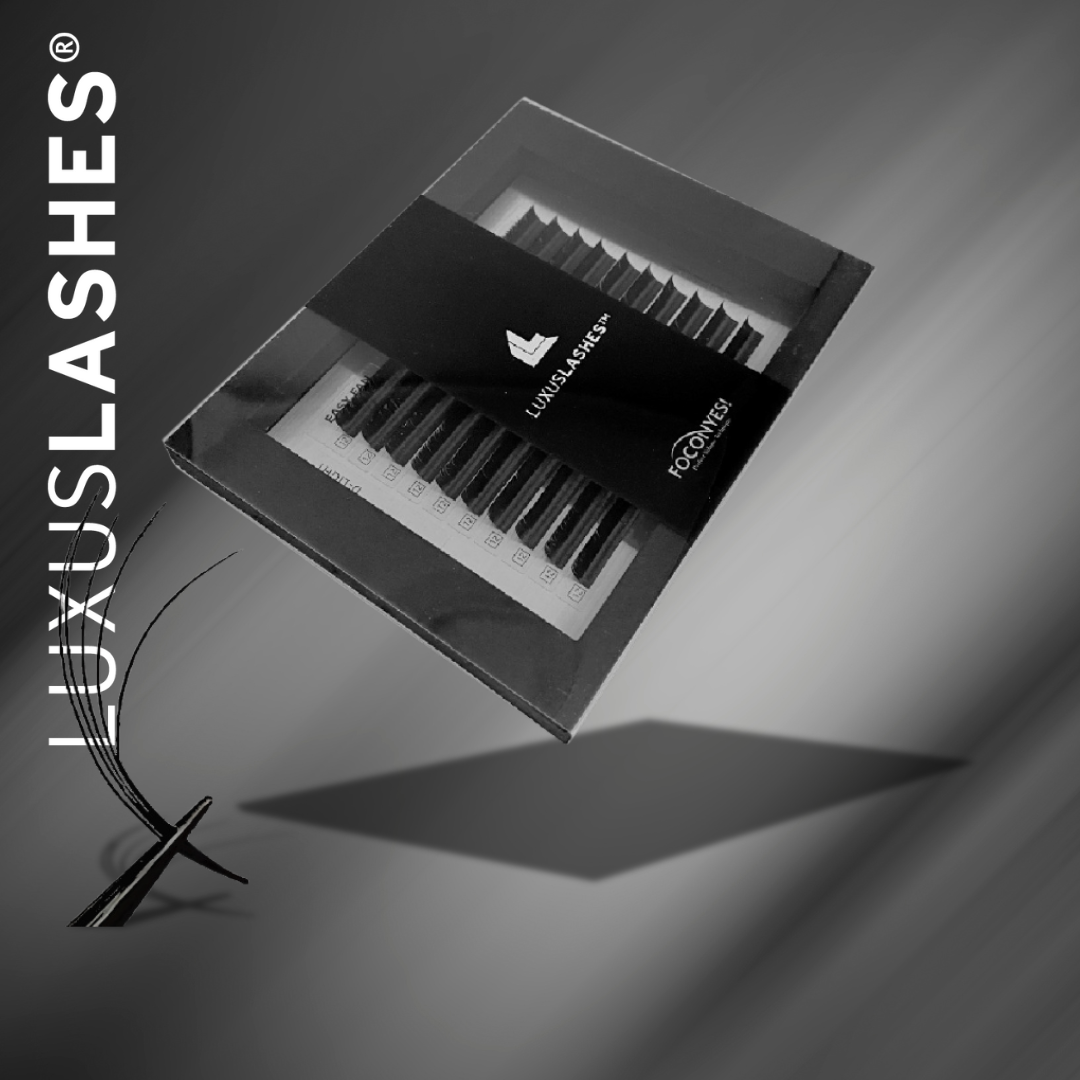 FOCONYES Wimpern von LUXUSLASHES® sind synthetische Wimpern, speziell für unsere Volumentechnik angefertigt. Sie sind extrem leicht, wunderbar weich und anwendbar für verschiedenste Volumen-Looks.Sie sind ideal zu fächern und direkt aus der Box heraus, fertig zum arbeiten. Dank unseres speziellen PBT-Materials sind unsere Wimpern so leicht wie eine Feder und dennoch perfekt stabil in ihrer Form. Ihre tief schwarze Farbe verleiht jedem Blick Intensität, während unsere Wimpern dank des innovativen Designs keine Kleberückstände vom Klebeband hinterlassen. Unsere Wimpernboxen wurden mit dem Blick auf Ihre Bedürfnisse entwickelt. Die perfekt weiche Box enthält 20 Reihen dichter Wimpern. Wir verstehen, dass Länge und Stärke von Wimpern nicht genormt sind und sich von Anbieter zu Anbieter unterscheiden. Daher benennen wir unsere Wimpern nicht nach Durchmesser, sondern nach Gewicht: Slim (ca.0,03-0,04)Light (ca. 0,05-0,06) Medium (ca. 0,07-0,09)Unsere Wimpernboxen sind nicht nur arbeitsfreundlich, sondern auch vielseitig und anpassbar.Die quadratischen Boxen ermöglichen es Ihnen, sich bequem am hohen Rand abzustützen, ohne die Wimpern zu beschädigen. Die Lash Cards bieten eine glatte, staubfreie Oberfläche, auf der heruntergefallene Wimpern problemlos wiederaufgenommen werden können, ohne lästiges Festkleben. Sie können die Boxen ganz nach Ihren Bedürfnissen anpassen, indem Sie eigene Boxen kreieren - die durchsichtigen Stripes lassen sich einfach mit einer Pinzette ablösen und mit Hilfe der Lash Cards zur eigenen Box zusammenfügen. Dank der ablösbaren Stripes können Sie den Inhalt Ihrer Box bis zu 8-mal vollständig aufarbeiten, was weniger Verschleißmaterial bedeutet. Die durchsichtige Hülle schützt die Wimpern vor Staub und ermöglicht Ihnen gleichzeitig ein klares Erkennen durch die Farbetiketten auf der Box. Bei der Entwicklung unserer LUXUSLASHES® Wimpernboxen haben wir an alles gedacht, damit Sie als Profi das beste Werkzeug für Ihre Arbeit haben. L-Curl ist perfekt für Kunden mit Schlupflid und kurzen Wimpern. Diese besondere Biegung ermöglicht kurze Wimpern aber ein noch sichtbarereres Ergebnis.